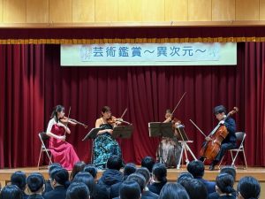 先日、弦楽合奏団フォンティーヌ鹿児島の黒瀬織音さん、今林伊吹さん、木佐貫茜さん、有村航平さんにお越しいただき芸術鑑賞会を開催しました。