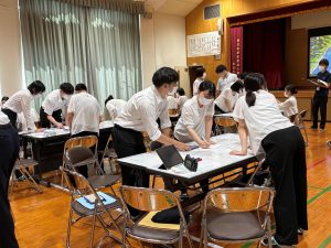鹿児島市地域福祉課の方をお招きし、避難所の運営と看護についてグループごとに図上シュミレーションを行いました。